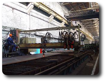 - l’équipement de coupage thermique par la découpeuse à gaz Kometa - 3,6К. Les plus grandes dimensions des tôles à travailler: 8000x3600x200 mm. La fidélité de la reproduction des contours commandés +/- 0,35 mm; - l’équipement de coupage thermique par l’installation de coupage à plasma Powercut-1500 de l’acier à fort alliage avec une épaisseur de 38 mm; - l’équipement de coupage thermique par l’installation de coupage à poudre avec épaisseur jusqu’à 200mm; |